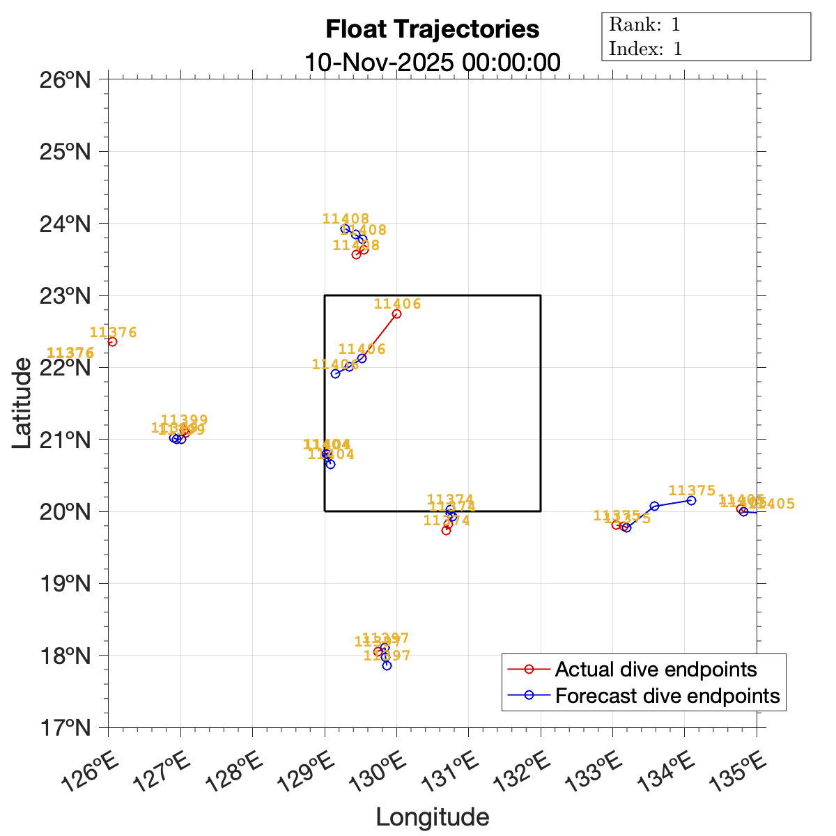 Suggested float command sets are included below. These commands have been optimized with respect to the mapping error scoring metric while using ocean surface flow forecasts to inform trajectory predictions.