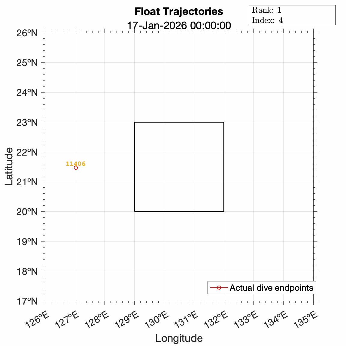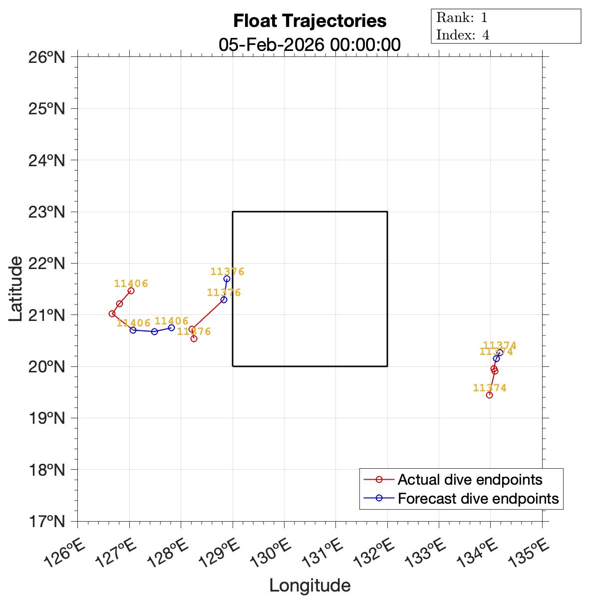 Suggested float command sets are included below. These commands have been optimized with respect to the mapping error scoring metric while using ocean surface flow forecasts to inform trajectory predictions.